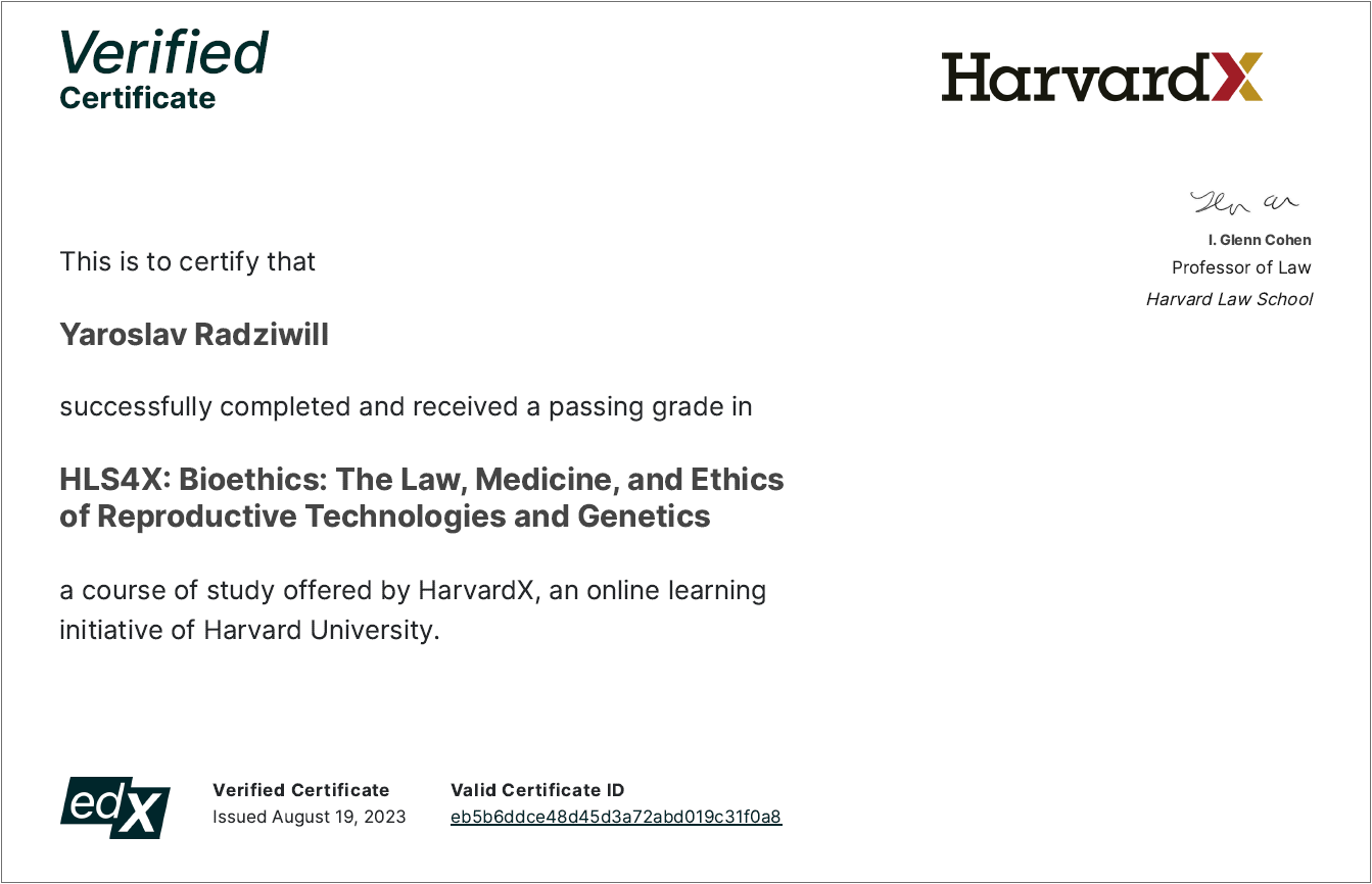 - 2023 - Harvardi Ülikool, USA (bioeetika õigus)